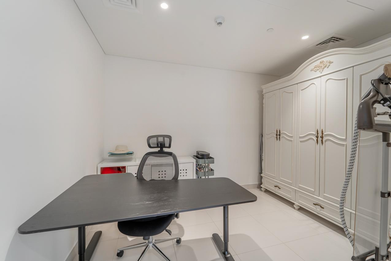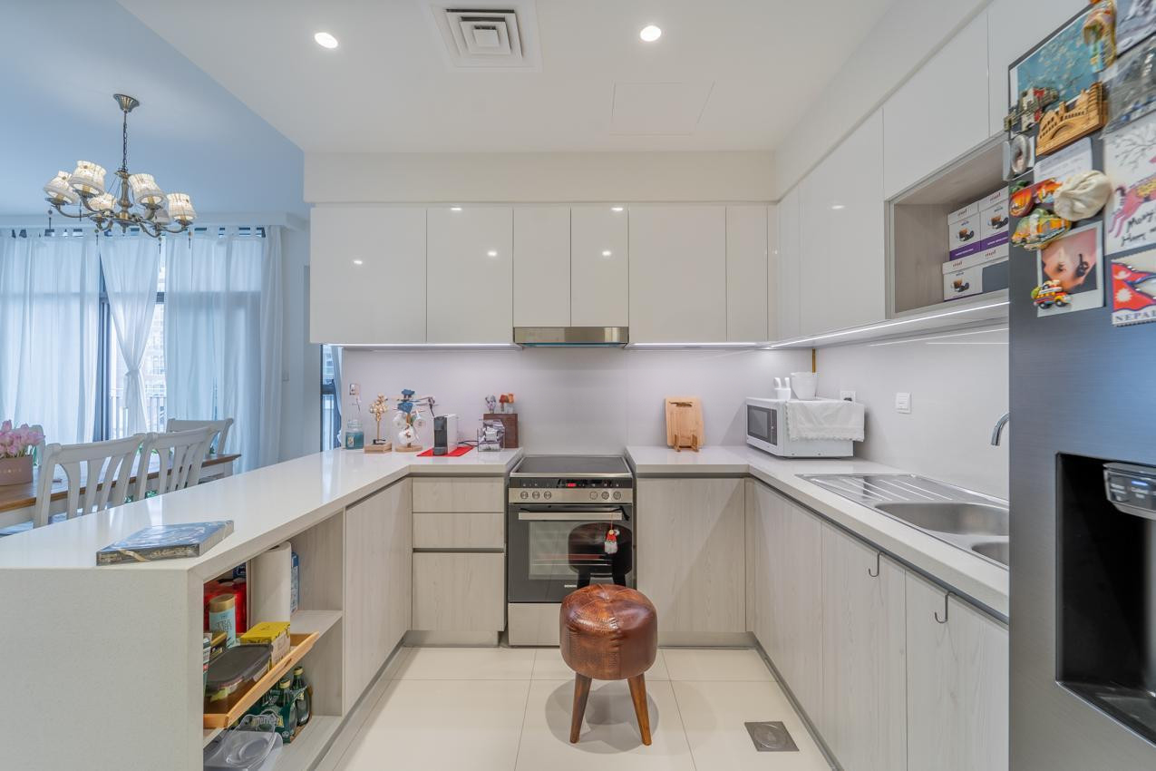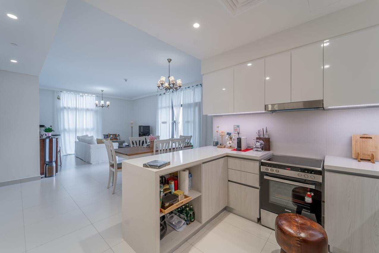 The low-floor property, totaling 1,378 sqft, has a small entrance hall, 2 good size bedrooms with fitted wardrobes, a house bathroom with a nice shower cabinet leading to a storage cupboard, a spacious open plan living and dining room through to the fitted kitchen, and a good community view from the balcony. A truly magnificent, well-laid apartment set on the 3rd floor of this prestigious building listed block A directly opposite Acacia complex. This exquisite and best-in-class property comprises two double bedrooms, 2 with en-suite bathrooms, and a fabulous living room/dining room with a little study room placed in a quiet corner.