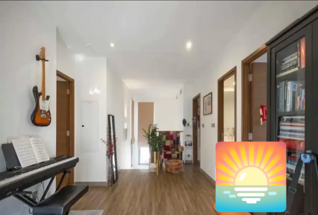 As you enter this light-filled home, you will love the open floor plan. This villa has been extended, and it comes with 4 bedrooms + Study + Maids, and an en-suite guest bedroom. There are three upstairs bedrooms, including an en-suite master with a walk-in closet. The rooms have captivating views of Sidra community.