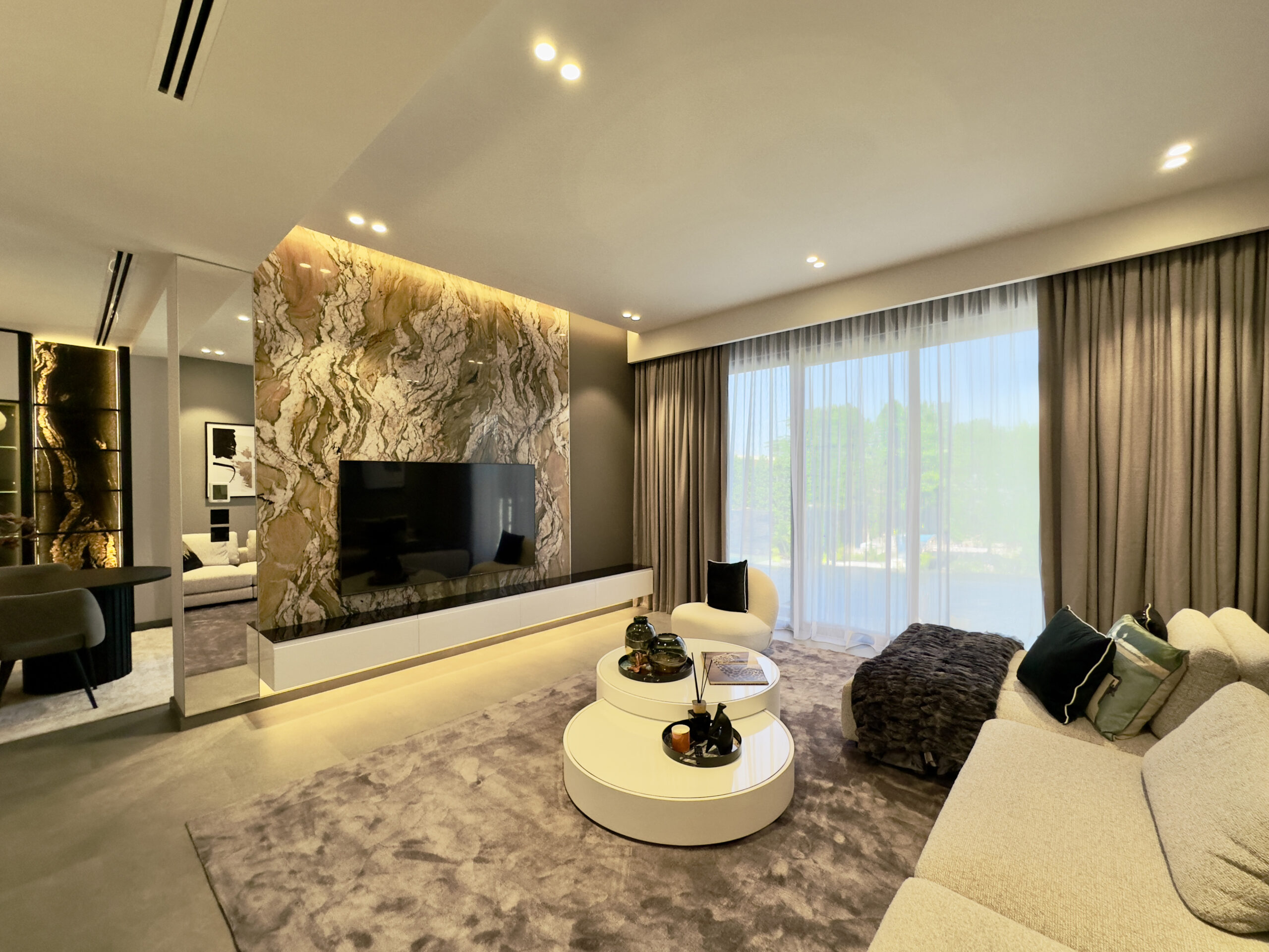 Sidra 3 – a distinguished villa collection set amidst a truly breathtaking landscape. Find yourself amongst the lush fairways overlooking the majestic parks and pathways and elevate your lifestyle with everyday luxury. Take in the majestic views of your swimming pool and the back garden from the comfort of your elegant home. Let the lush landscapes connect you with nature, as you take an evening stroll through the neighbourhood with your loved ones. Where each villa boasts a generous private terrace and floor-to-ceiling windows that usher in all the shades of green into your home. Where the simplicity of modern architecture blends with sleek façade details and large sliding windows, creating an effortless flow between the indoor living and outdoor areas. A modern villa that boasts clean lines and expansive windows tied together with strikingly bold features and a material palette.