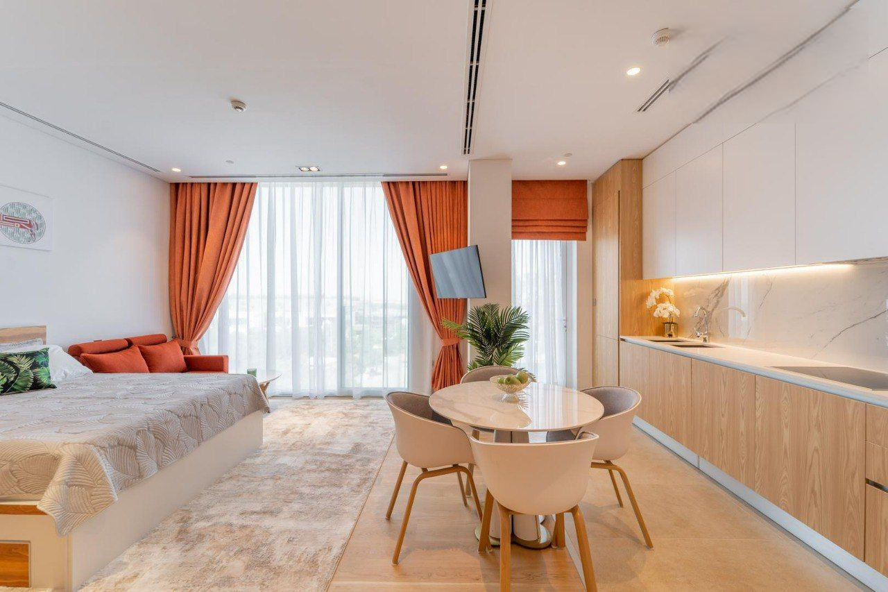 A well-priced studio apartment is available to buy in almost new condition. An excellent, spacious apartment in the prestigious Al Barari area, where people say even the air is cleaner. This low-floor property, totaling 564.35 sq ft, comprises an entrance hall, spacious open plan living and dining room through into the well-laid fitted kitchen. Furthermore, you will have a big house bathroom with a shower, storage cupboard, and even a washing machine included in the sale! Not to mention a beautifully green community view from the balcony.