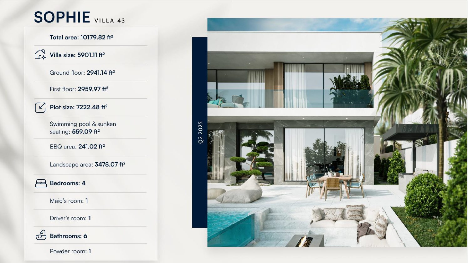 Introducing “Sophie,” a luxurious four-bedroom detached residence nestled in the prestigious Jumeirah Park. This stunning home offers a remarkable 5,901 sq ft of living space, meticulously designed to cater to the most discerning of tastes. This rarely available dream home offers stunning features, tasteful modern decor, and a prime location that will appeal to those seeking a spacious family residence in 2025. One of the highlights of the home is undoubtedly its state-of-the-art outdoor, swimming pool and sunken seating facilities. Equipped with feature lighting, waterfall features, and lush greenery, this space offers the ultimate in relaxation and wellness.