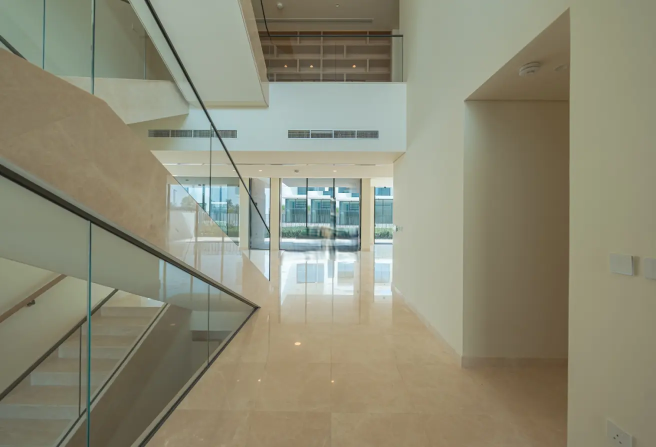 As you enter this light-filled home, you will love the open floor plan. This G+1 villa has been extended by the developer, and it comes with 5 bedrooms + Study + Maid, an added Powder Room, and an en-suite multiple guests bedrooms. There are 4 upstairs bedrooms, all of them being en-suite master with a walk-in closet. The rooms have captivating views of the lush community.