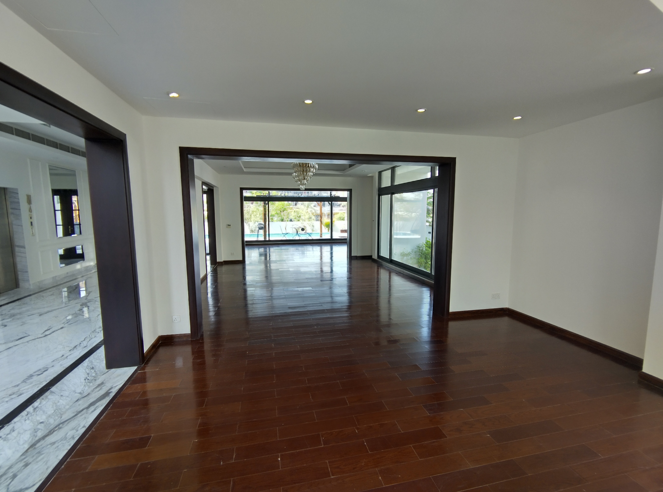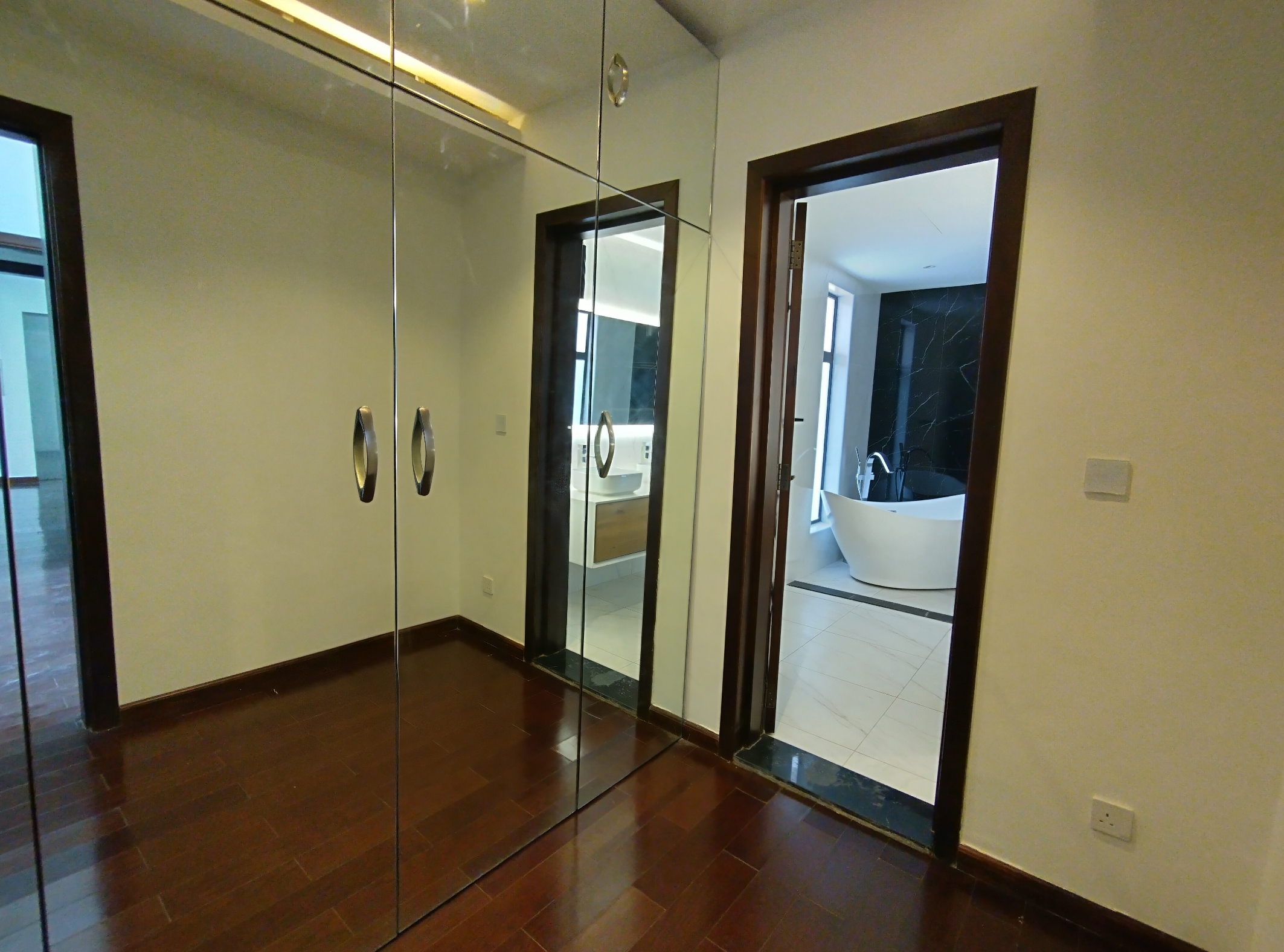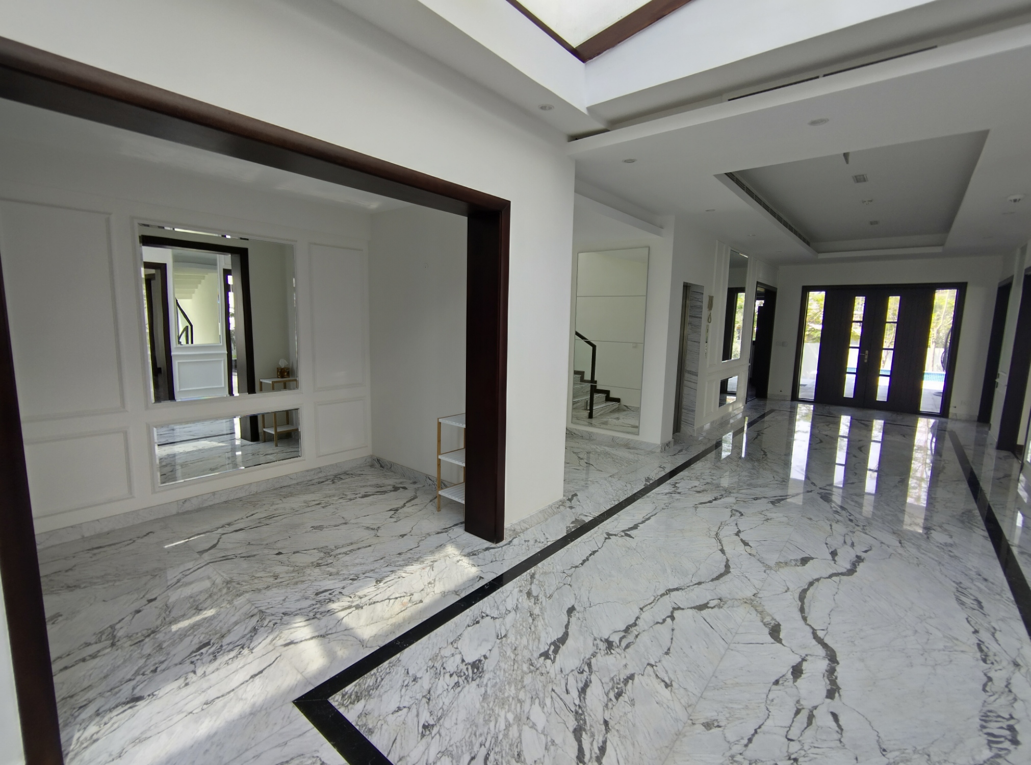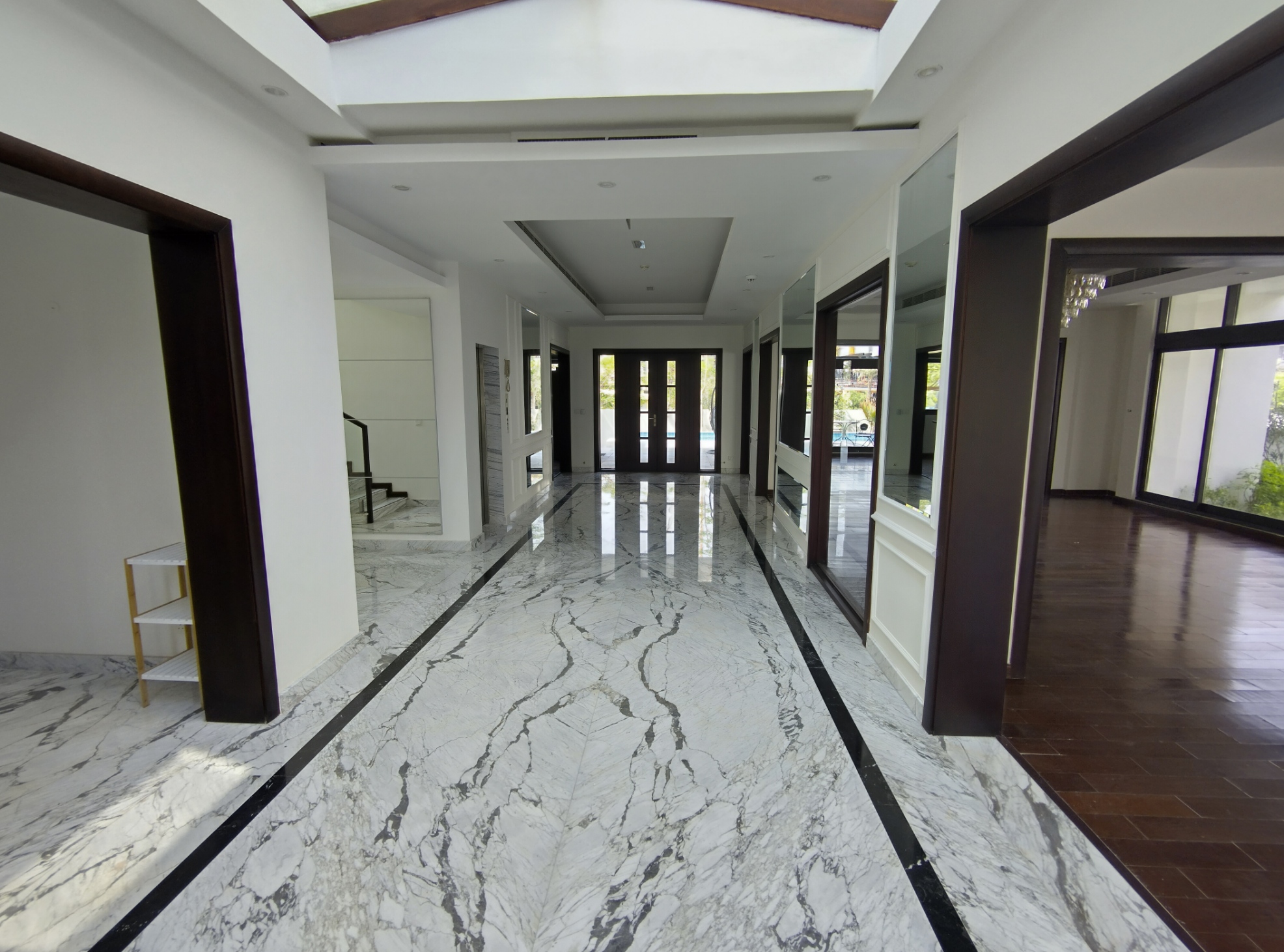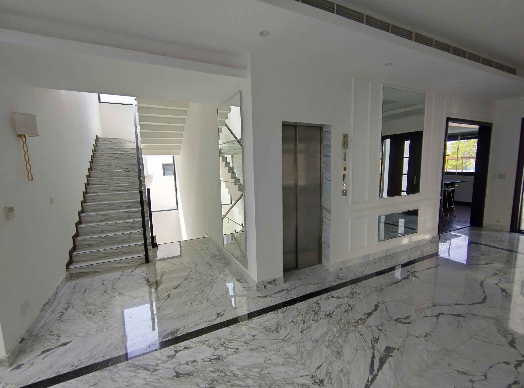 Moving up to the first floor, the generously sized master bedroom is a refuge of tranquility. Ample built-in storage and an ensuite bathroom with a walk-in rainfall shower are luxurious additions. Five further good-sized double bedrooms and fully tiled bathrooms with a separate standalone bath and shower complete this level. The attic is accessed via the staircase, or you can simply use the internal house lift! This property further benefits from central air conditioning and double glazing, ensuring a cosy low noise effective environment.