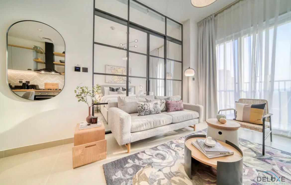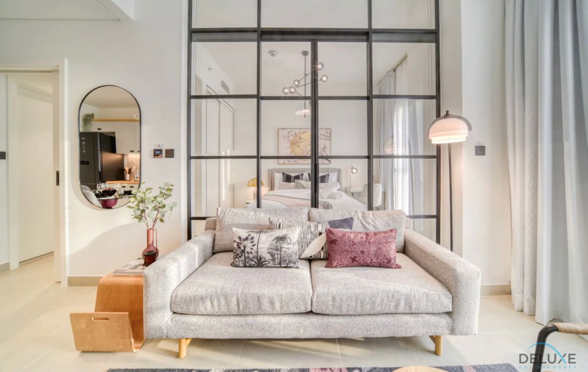 An excellent, compact apartment in the middle of Dubai Hills. This high-floor property, totaling 486 sq ft has a small entrance hall, spacious open plan living & dining room through to the fitted kitchen, house bathroom with shower over bath leading to storage cupboard, and a lovely view from the balcony. The bedroom is divided by a stylish glass partition with the possibility of having complete privacy by drawing the curtains across. Further benefits will include an intercom, 24-hour concierge and security, underground parking, and a communal swimming pool. Dubai Hills is a vibrant destination that serves both an affluent business and a high-class residential community. Viewing is highly recommended to avoid further disappointment!