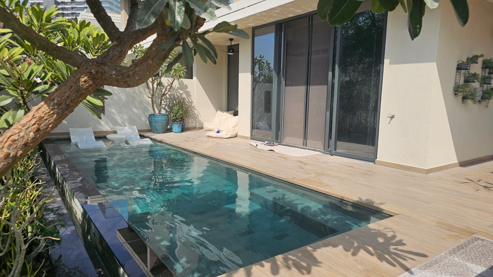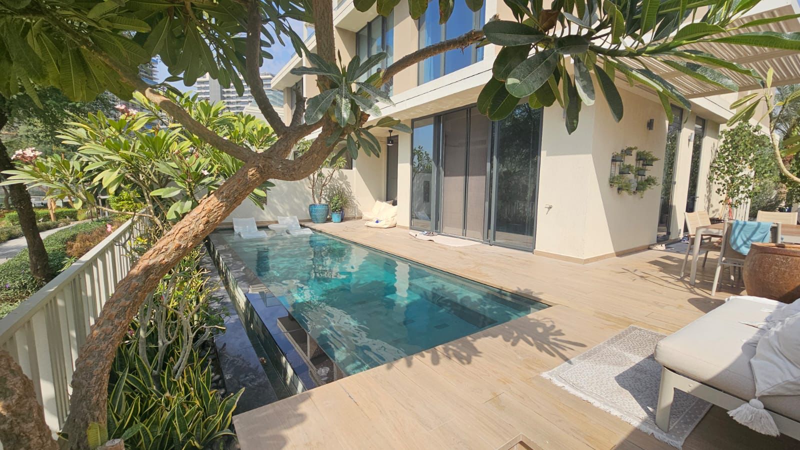 Club Villa’s – a distinguished villa collection set amidst a truly breathtaking landscape. Find yourself amongst the lush fairways overlooking the majestic parks and pathways and elevate your lifestyle with everyday luxury. Take in the majestic views of your very own swimming pool and the back garden from the comfort of your elegant home. Let the lush landscapes connect you with nature, as you take an evening stroll through the neighbourhood with your loved ones. Where each villa boasts a generous private terrace and floor-to-ceiling windows that usher in all the shades of green into your home. Where the simplicity of modern architecture blends with sleek façade details and large sliding windows, creating an effortless flow between the indoor living and outdoor areas. A modern villa that boasts clean lines and expansive windows tied together with strikingly bold features and a material palette.